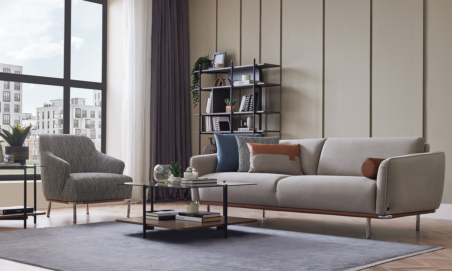 The Fargo Living Room Set brings a new style to living spaces with its modern and functional design. Combining comfort with functionality through the high-comfort sponge structure used in the seat and back, as well as the bed feature, it offers a rich combination of linen-look fabric alternatives in different colors.