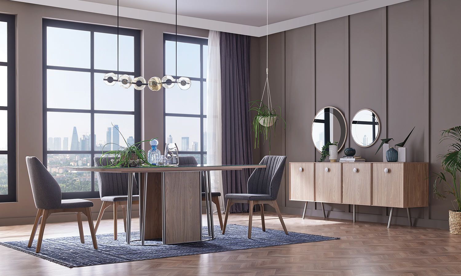 Esthetic Details and the Warmth of Wood Adding a brand new style to tables where delicious and enjoyable moments are shared by the whole family, the Agata Dining Room brings the aesthetic details and warmth of wood into living spaces. With its functional details, aesthetic lines, and specially crafted design, the Agata Dining Room transforms your dining area into a special space with each piece accompanying your enjoyable moments